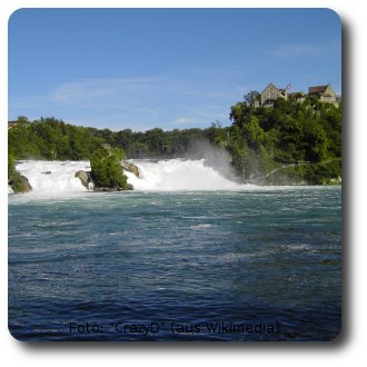Der Rheinfall bei Neuhausen, einem Stadtteil von Schaffhausen, ist einer der größten Wasserfälle Europas. Er hat eine Höhe von 23 Metern und eine Breite von 150 Metern und es tosen zwischen 95.000 und 1.250.000 Liter Wasser pro Sekunde über die Felsen. Man kann einen Rundweg um den Rheinfall herum laufen (etwa 4 km): Zunächst Rheinaufwärts (teilweise durch die Stadt) bis zu einer Eisenbahnbrücke, dann beim Schloß Laufen zum Wasser nach unten gehen und dann Rheinabwärts bis zu einer Brücke. Dann am anderen Ufer zurück zum Ausgangspunkt. Auch Bootsfahrten unterhalb des Rheinfalls (bis zum Wasserfall) sind möglich.